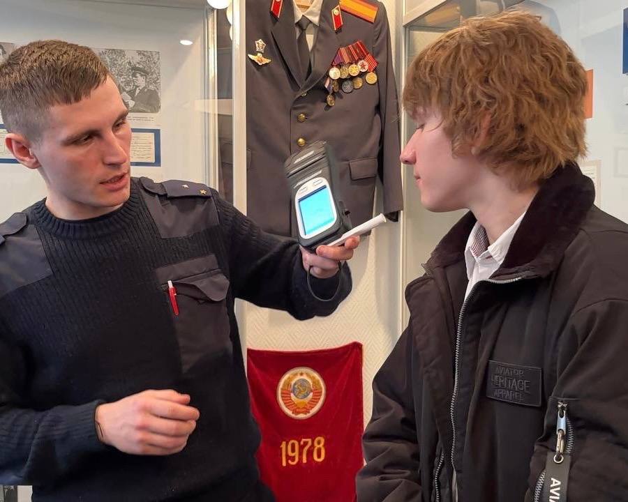 Визит начался с экскурсии в музей истории службы, где автоинспекторы рассказали о ключевых этапах становления Госавтоинспекции. Ребята с интересом слушали о ветеранах службы, раритетных экспонатах и развитии дорожно-патрульной службы от первых постов до наших дней.