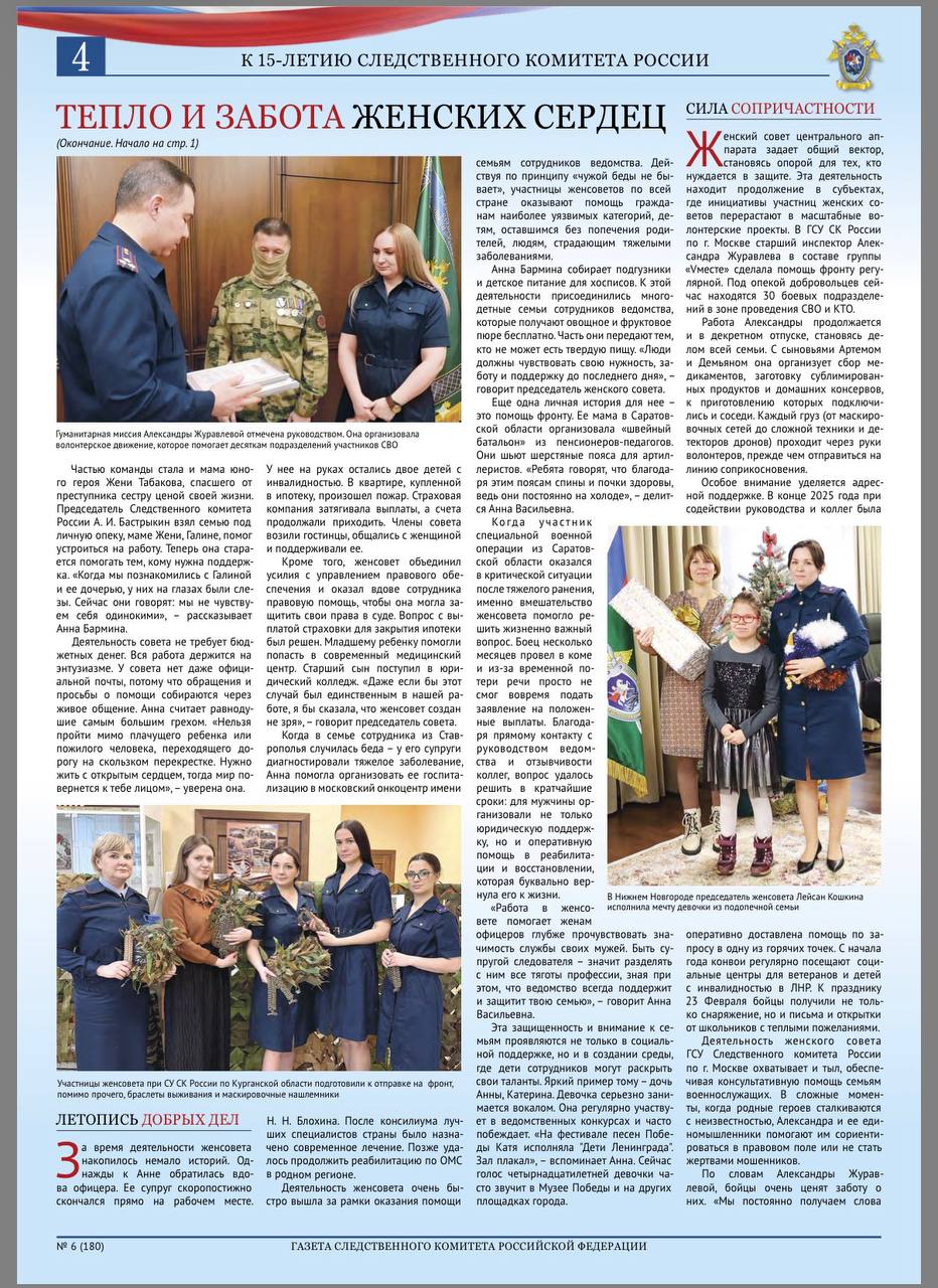 В новом выпуске можно ознакомиться с результатами работы Женских советов в регионах, в том числе Женского совета при следственном управлении СК России по Курганской области.