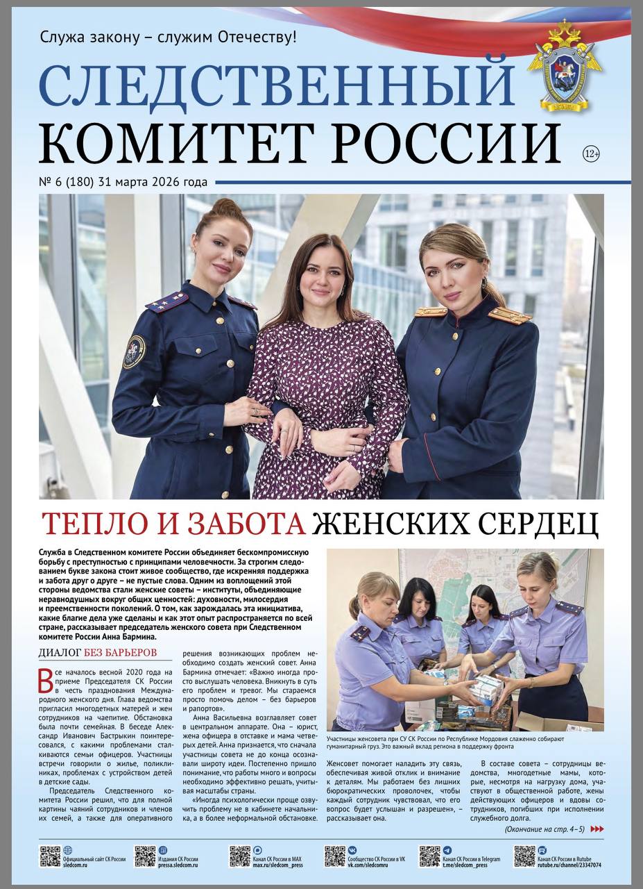 На официальном сайте СК России размещен очередной выпуск газеты «Следственный комитет России» от 31.03.2026 № 6 (180).