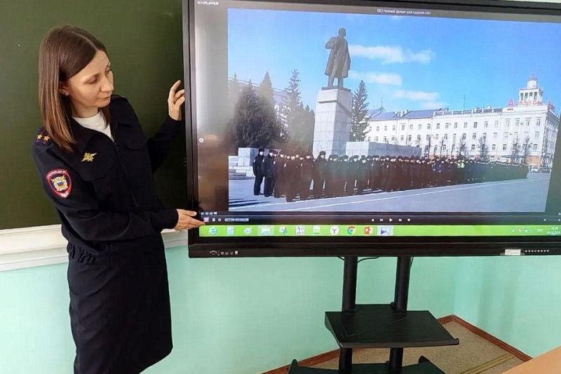 Сотрудники правового отдела УМВД России по Курганской области старший лейтенант внутренней службы Надежда Ряписова и лейтенант внутренней службы Надия Белиба встретились с учащимися школы №5 города Кургана.