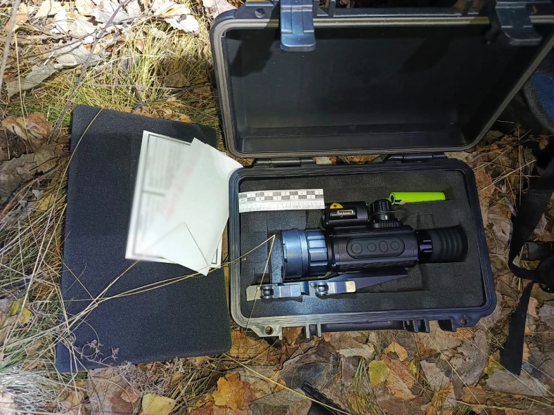 Полицейские изъяли транспортное средство, использованное фигурантами для совершения охоты, мясо животных, топор, оружие, тепловизор, охотничьи ножи.