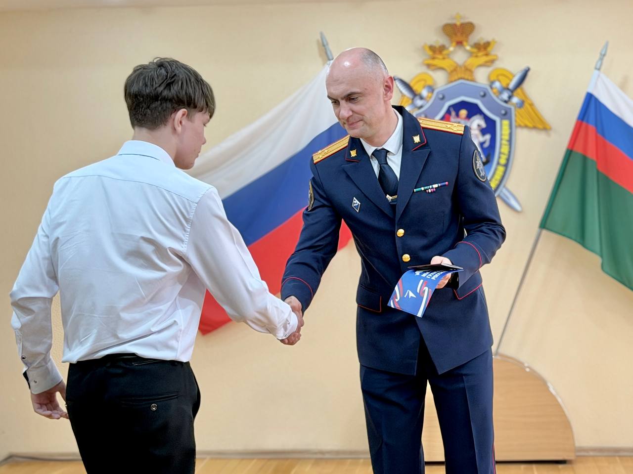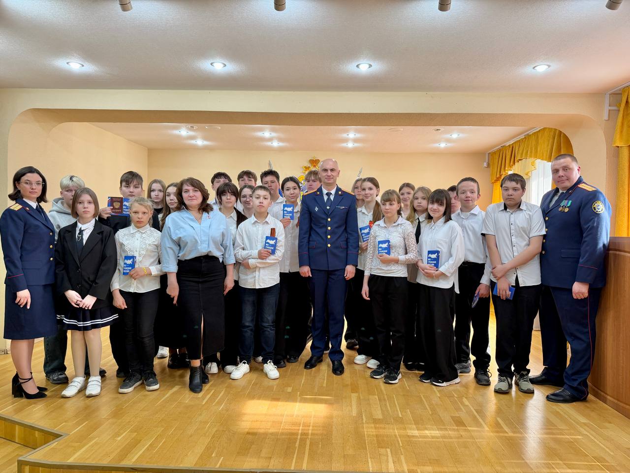 В торжественной обстановке руководитель следственного управления вручил паспорта и памятные подарки 23-м школьникам из Курганской области, отметив значимость этого события в жизни каждого подростка.