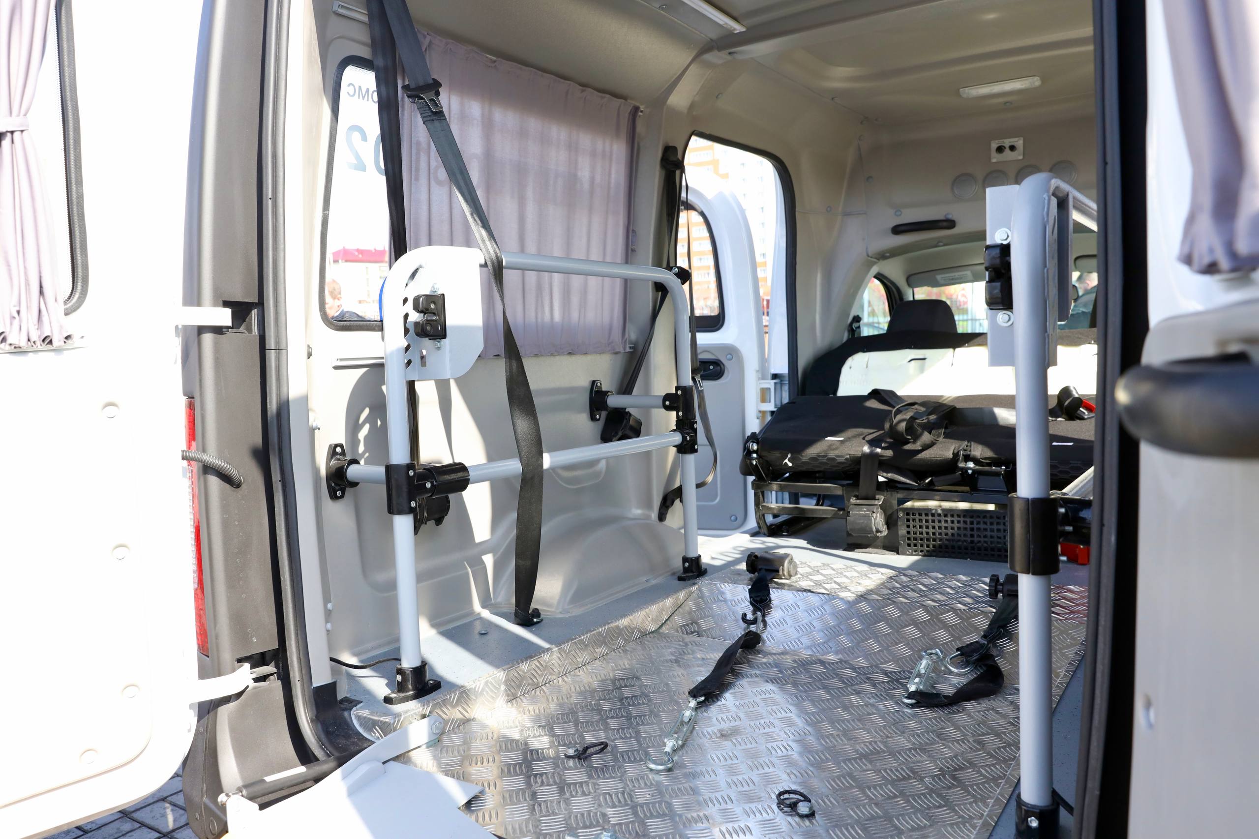Основным преимуществом новой машины является наличие подъемника и крепления для колясок, что обеспечивает удобство и безопасность при перевозке.