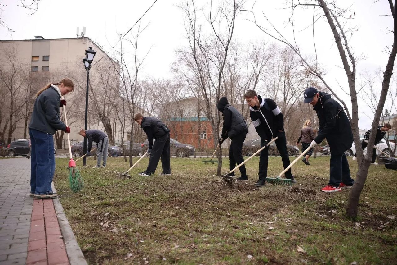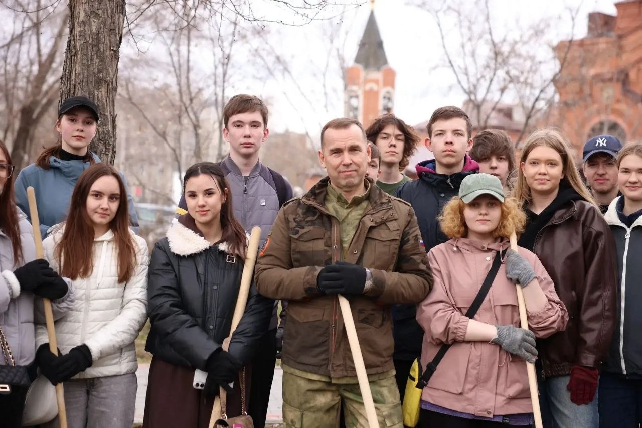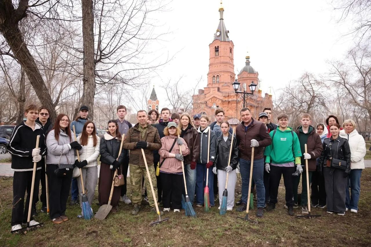 В Чистый четверг вместе с коллегами из Правительства и ребятами из 31-й гимназии работаем на уборке городского сада. Чистим территорию прямо перед храмом Александра Невского. Готовим к празднику Великого Воскресения.