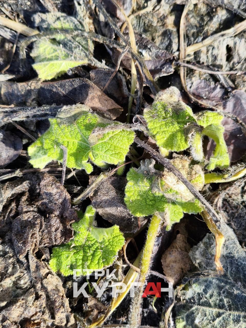 Наши подписчики заметили на проталине первые листочки шток-розы.