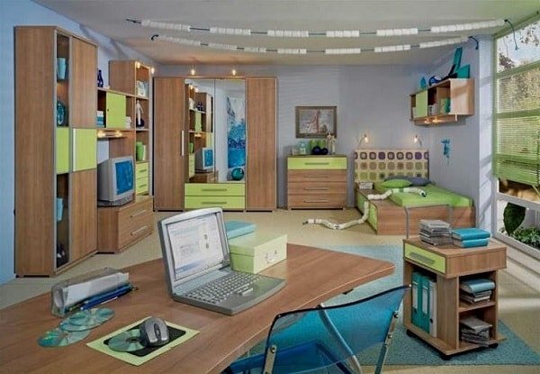 - Зона сна: Кровать не должна быть расположена под окном или напротив двери. Оптимально, когда изголовье упирается в стену. Лучше избегать двухъярусных кроватей, так как они могут вызывать дискомфорт.