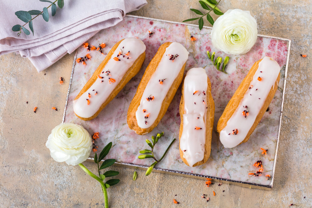 Эклеры прекрасно подойдут к любым напиткам — чаю, кофе или сокам. Эти сладкие произведения искусства не оставят равнодушными ни детей, ни взрослых, представляя собой лакомство для истинных гурманов.