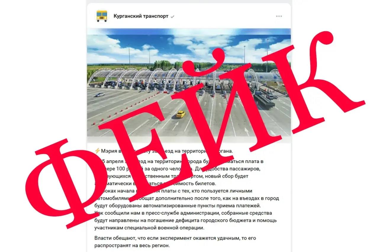 Один из курганских пабликов 1 апреля распространил недостоверную, заведомо ложную информацию, что мэрия Кургана вводит плату за въезд на территорию города, а собранные средства якобы будут направлены на погашение дефицита городского бюджета и помощь участникам специальной военной операции.