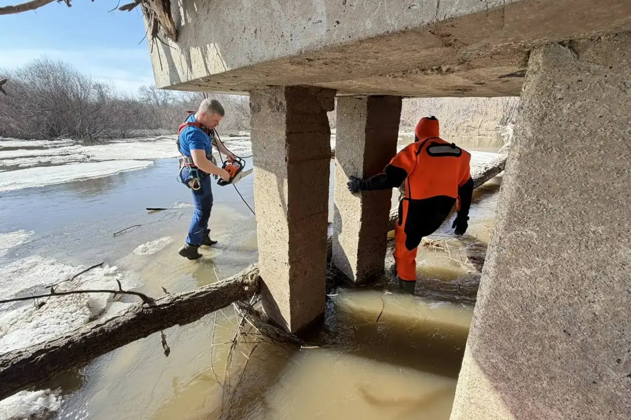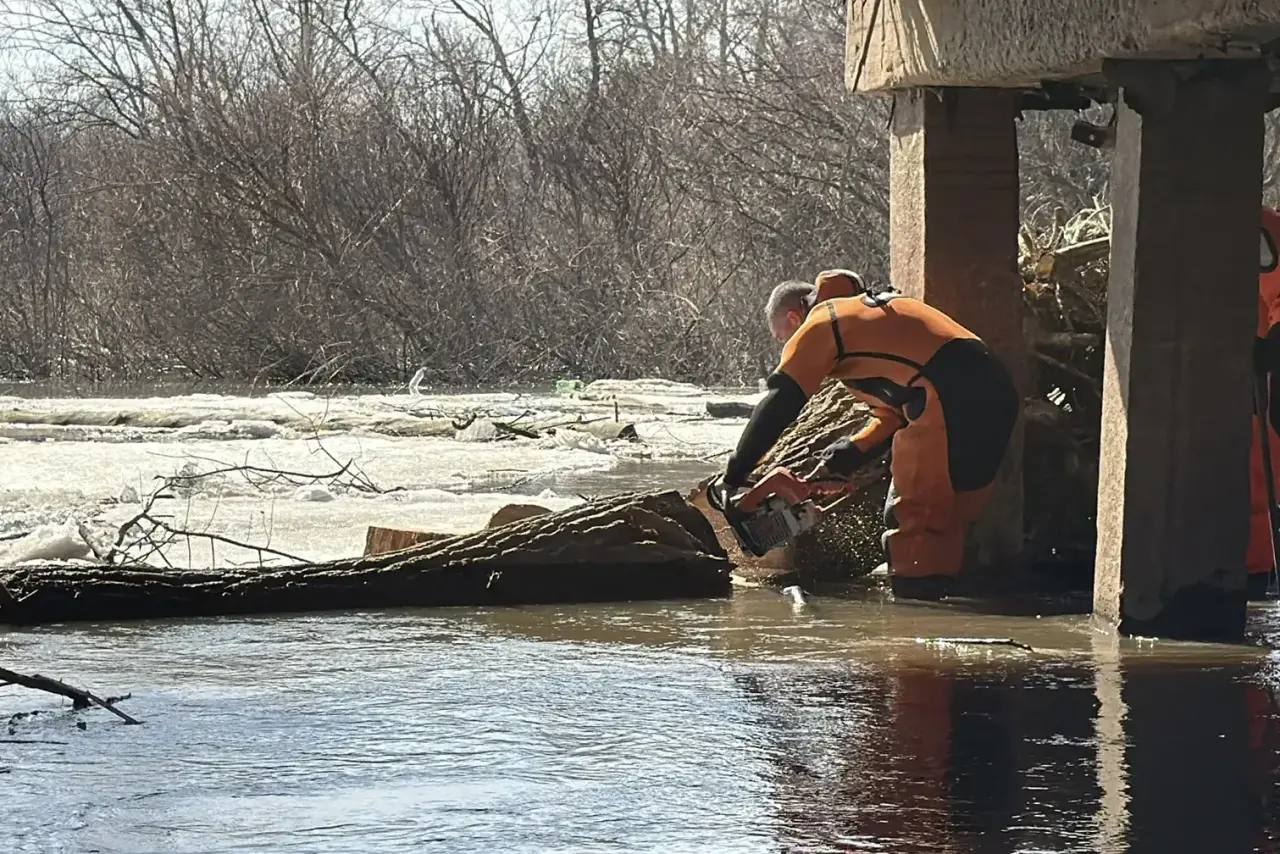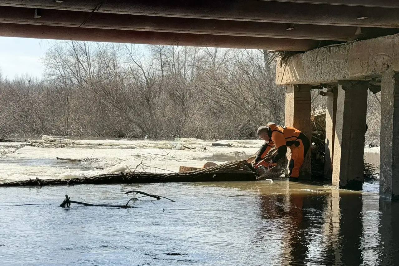 Спасатели убрали наносной мусор и ветки деревьев, которые мешали льду и воде беспрепятственно проходить под мостом и создавали дополнительное давление на его опоры.