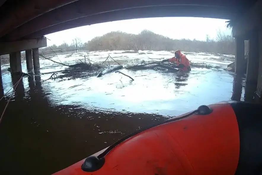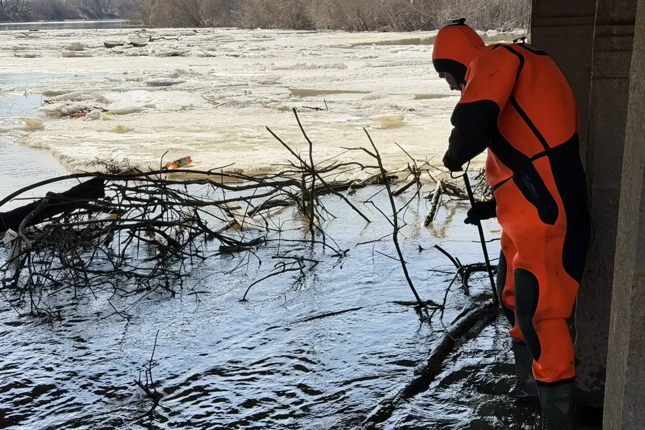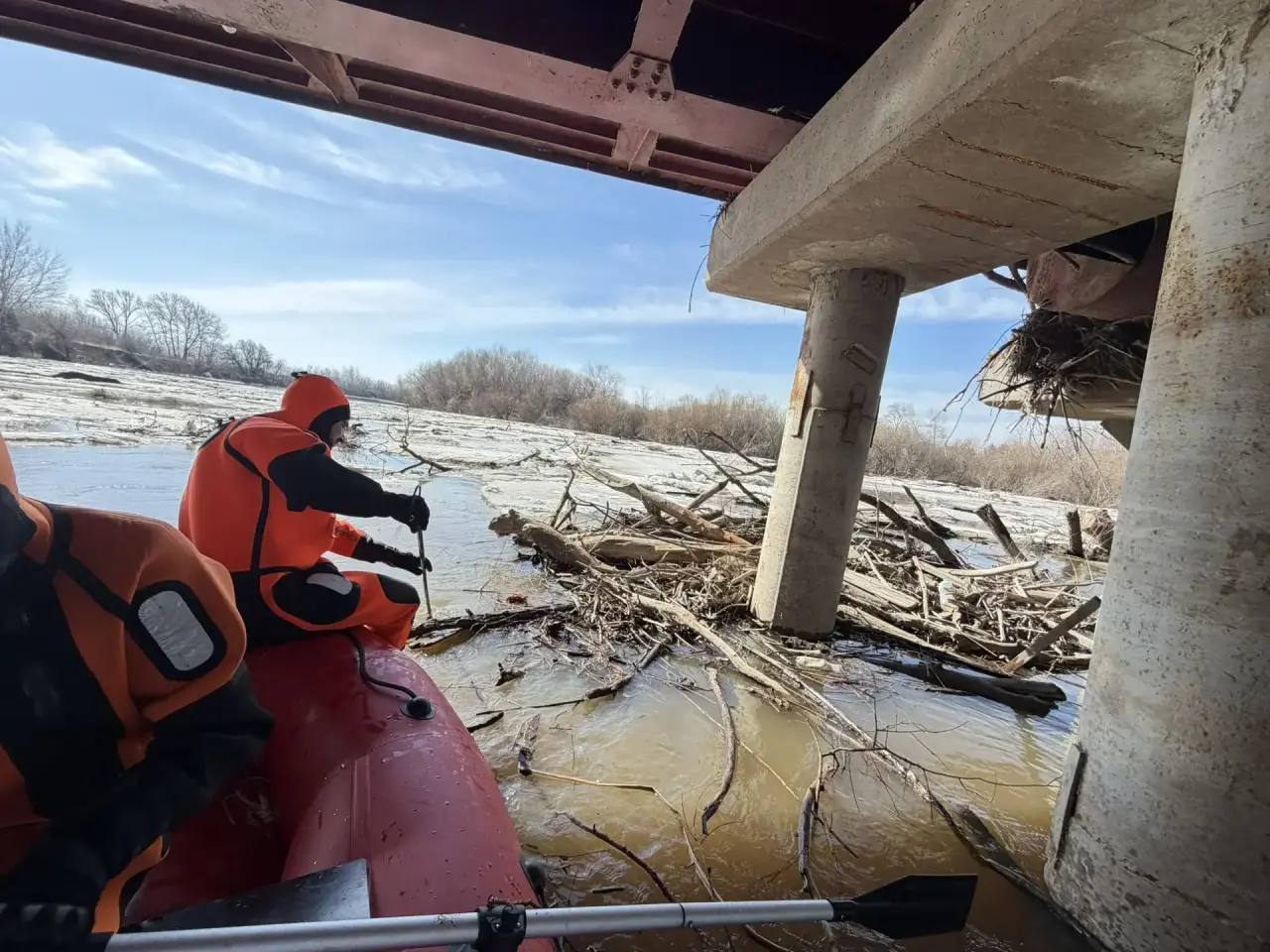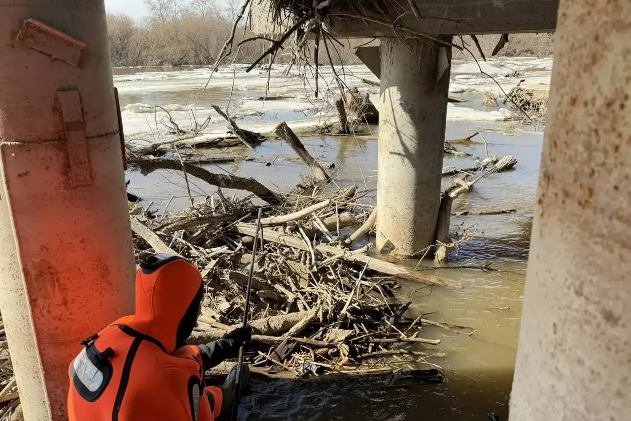 Спасатели убрали наносной мусор и ветки деревьев, которые мешали льду и воде беспрепятственно проходить под мостом и создавали дополнительное давление на его опоры.