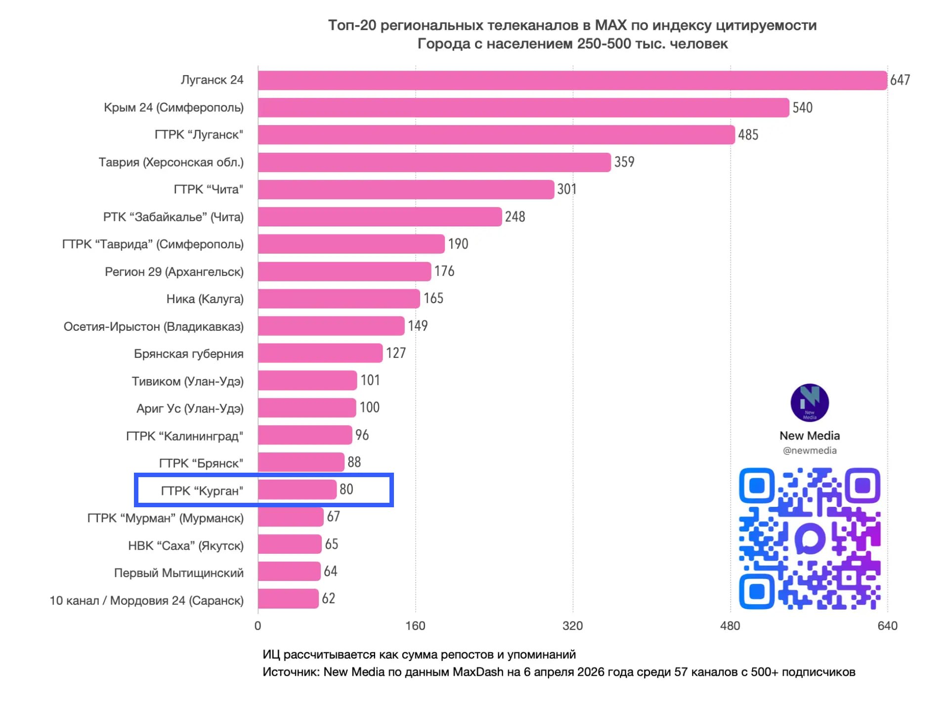 Канал ГТРК Курган в MAX впервые попал в федеральный ТОП
