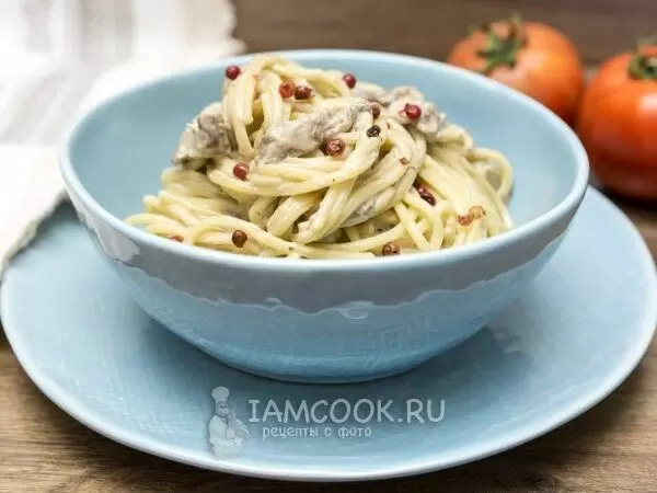 - Ингредиенты: 300 г спагетти, 30 г сливочного масла