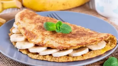 В глубокой миске взбейте яйцо с овсянкой, добавьте молоко и соль. Обжаривайте на сковороде, накрывая начинкой из творога и нарезанного банана. Можно подавать с ягодами или полить медом — экспериментируйте с подачей!
