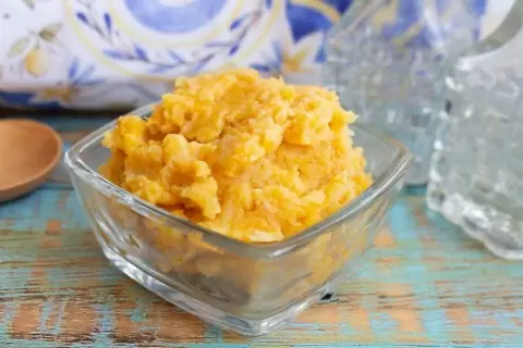Пока нут варится, тыкву следует нарезать кубиками, приправить солью, черным перцем и одной столовой ложкой оливкового масла. Затем перемешку запекать в духовке при температуре 180 градусов до мягкости. Готовая тыква станет прекрасным компаньоном для нутовой основы.