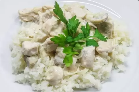 Фрикасе — это блюдо, которое на протяжении веков завоевывает сердца гурманов. Мясо, медленно тушащееся в густом белом соусе с добавлением специй и свежих овощей, делает его поистине уникальным. Курица является источником высококачественного белка и полезных витаминов, в то время как грибы добавляют блюду особую пикантность и множество полезных микроэлементов. Рис, в свою очередь, прекрасно впитывает соус, что делает вкус еще более насыщенным.