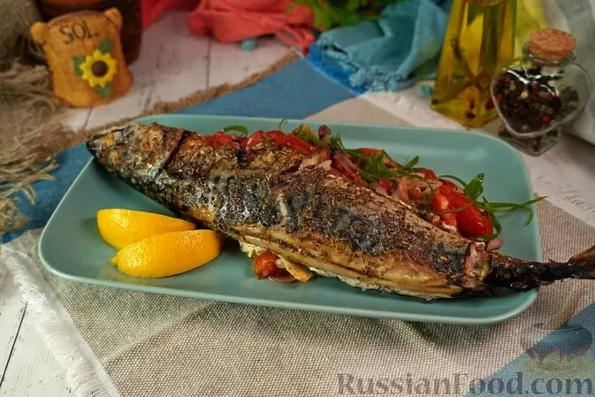 - Запечённая скумбрия по-гречески: это блюдо, наполненное ароматами лимона и оливкового масла, гармонично сочетается с томатами и специями. Идеальный компаньон для белого вина на домашнем ужине.