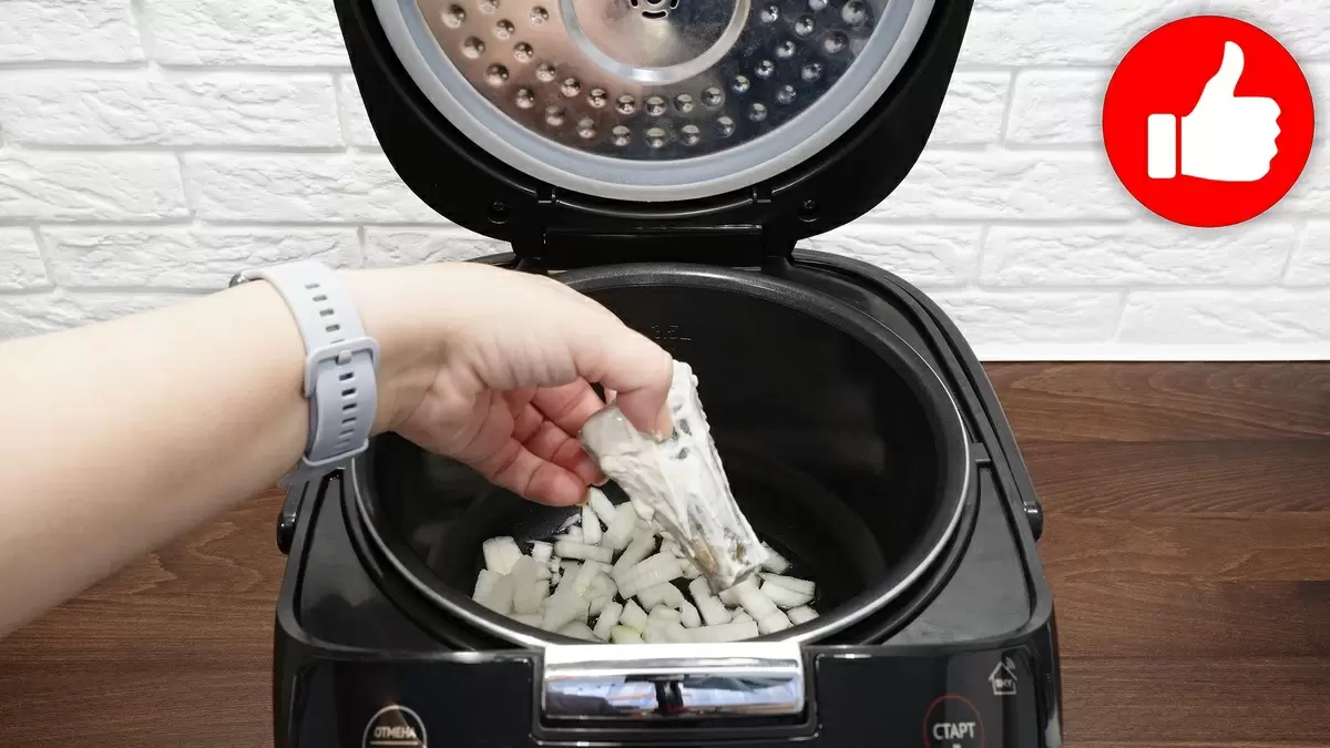 Теперь перейдем к рыбе. Каждый кусочек нужно хорошенько обмазать приготовленной сметаной. В чашу мультиварки налейте подсолнечное масло и выложите дно слоем из нарезанного лука.