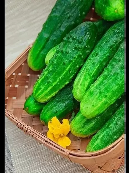Плоды длиной 10-11 см имеют правильную веретеновидную форму и привлекательную темно-зеленую окраску с аккуратными полосами. Упругая кожица и выраженная бугорчатость позволяют огурцам успешно сохранять свои качества как в свежем виде, так и после переработки. Более того, высокие всхожесть и устойчивость к низким температурам обеспечивают аудиторию с возможностью получения качественных плодов даже в неблагоприятных условиях.
