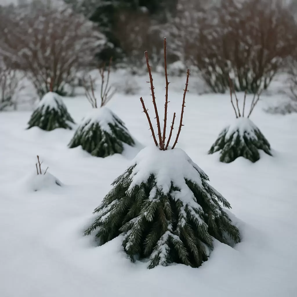 - Проверка укрытия после снегопада: достаточно слегка пригладить снег и убедиться, что он не слишком тяжёлый, чтобы не повредить побеги.