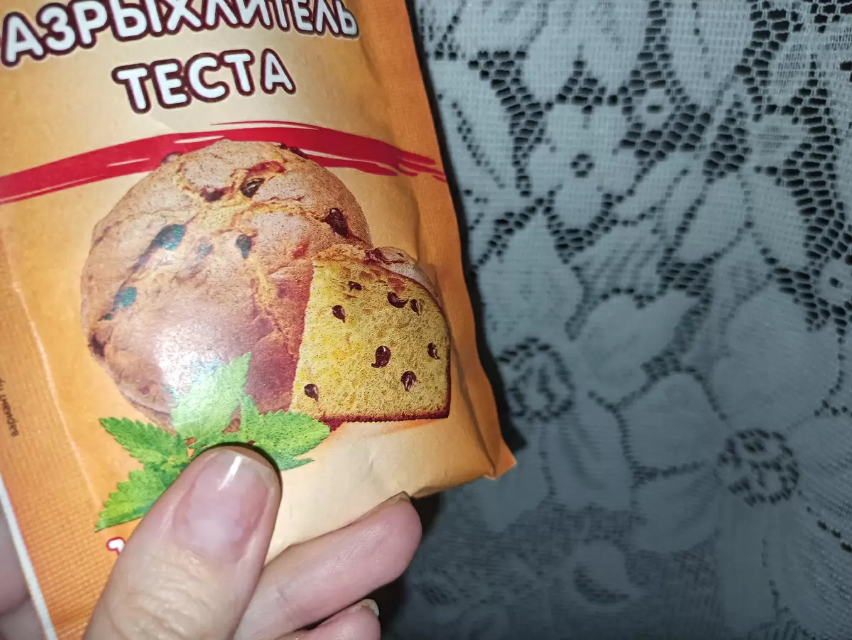 1. Взять один пакетик разрыхлителя и растворить его в пяти литрах теплой воды.