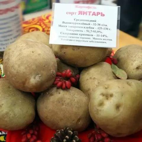 Янтарь характеризуется среднепоздним сроком созревания — 110-120 дней. Урожайность составляет от 183 до 286 центнеров с гектара, а при соблюдении агротехнических рекомендаций может достигать 354 ц/га. Больше 90% клубней соответствуют высоким товарным стандартам, а отличная лежкость (94%) позволяет сохранить их даже в зимний период.
