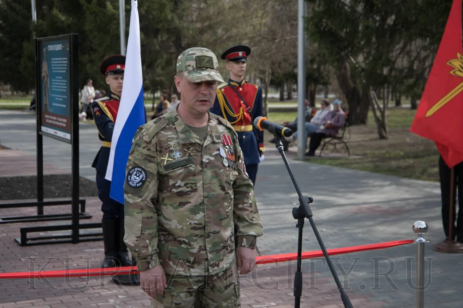 В Городском саду Кургана сегодня состоялось торжественное открытие выставки «Герои и подвиги» в рамках историко-просветительского проекта, который реализуется Российским военно-историческим обществом с 2022 года. Проект посвящен участникам специальной военной операции – современным защитникам Отечества, которые продолжают славные традиции героев Великой Отечественной войны. На мероприятие собрались ветераны специальной военной операции, родители и родные Героев СВО, кадеты и школьники, студенты, представители регионального общественного движения «Волонтеры Победы».