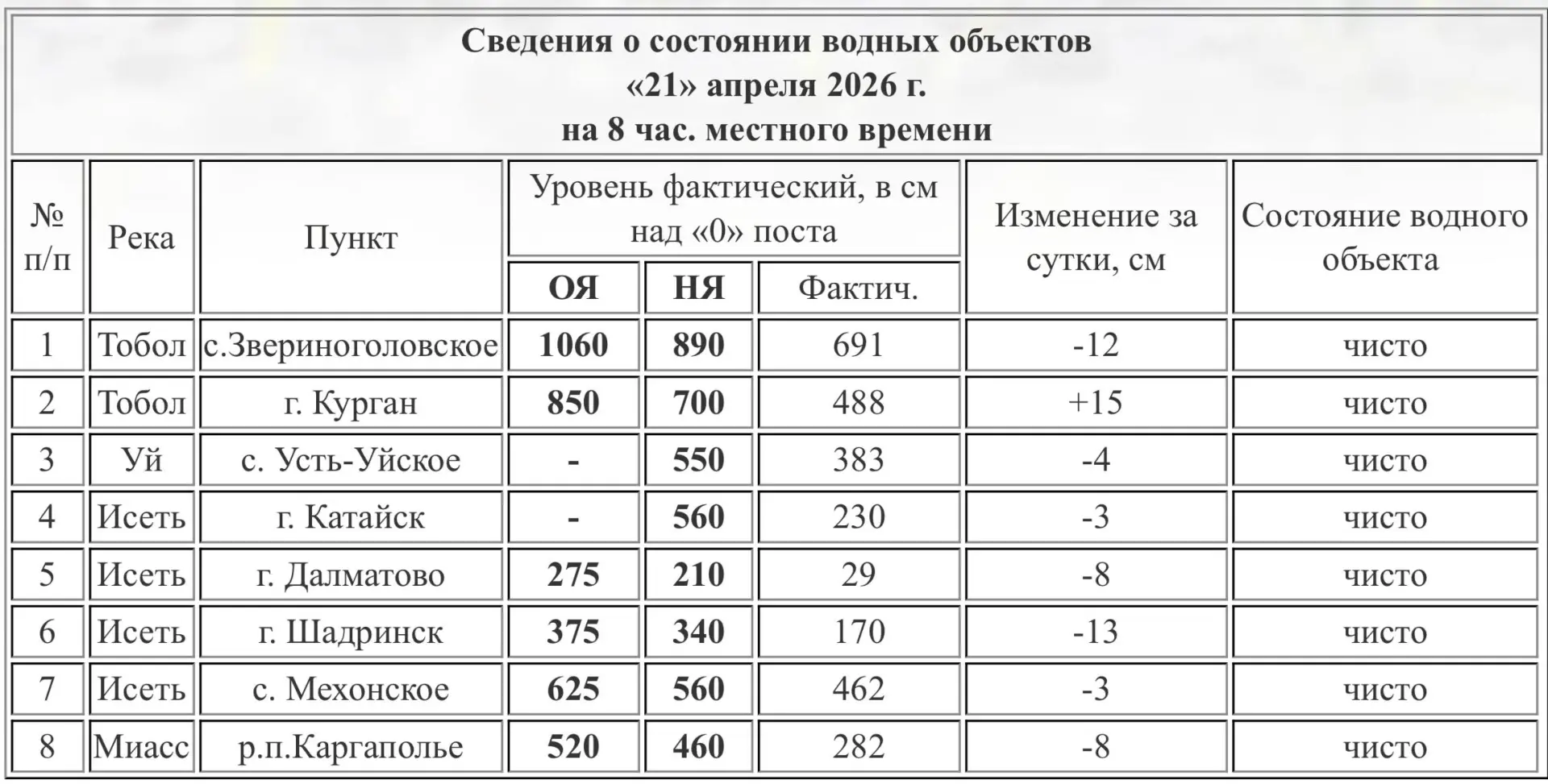 За сутки он вырос на 15 см. В остальных населенных пунктах и на реках наблюдается снижение уровня воды.