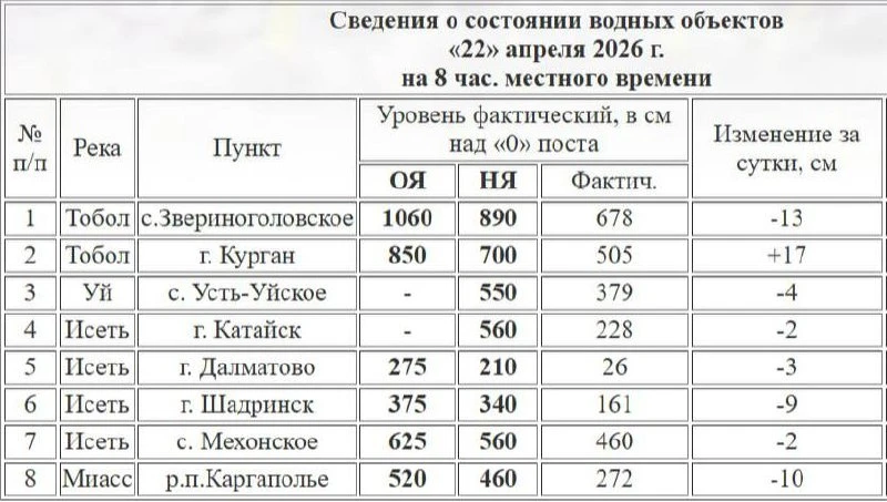 На 8:00 22 апреля он составил 505 см (+17 см за сутки).