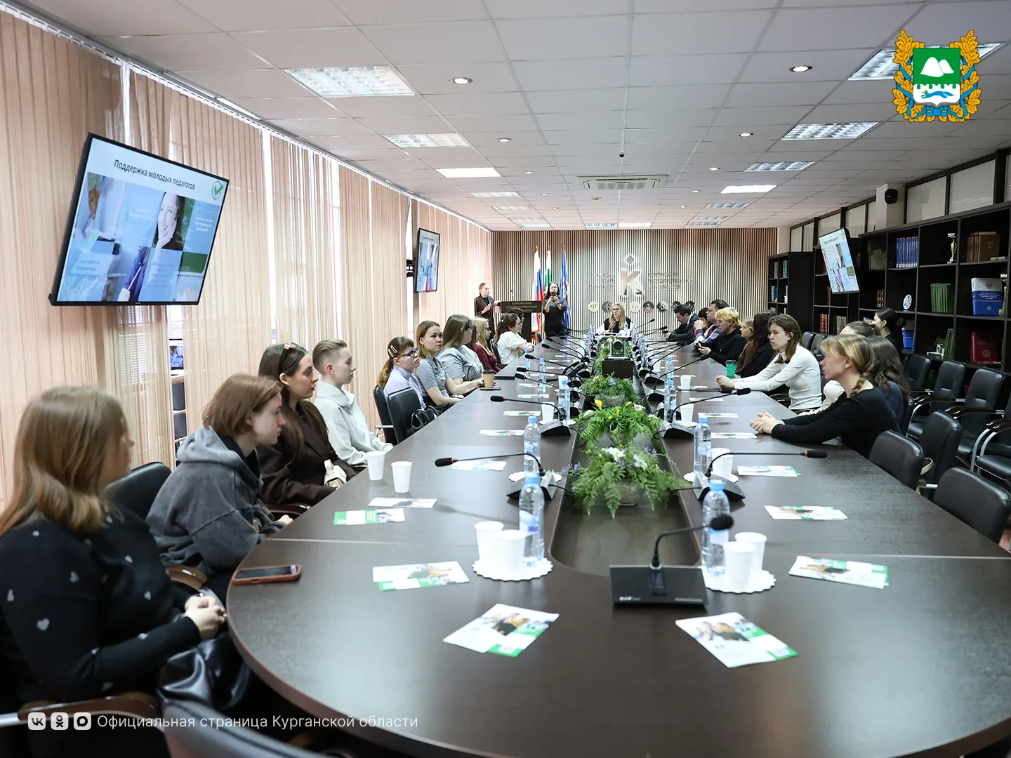 Заместитель губернатора по социальной политике Наталья Кирилова и директор департамента образования и науки Курганской области Андрей Кочеров встретились со студентами Курганского государственного университета