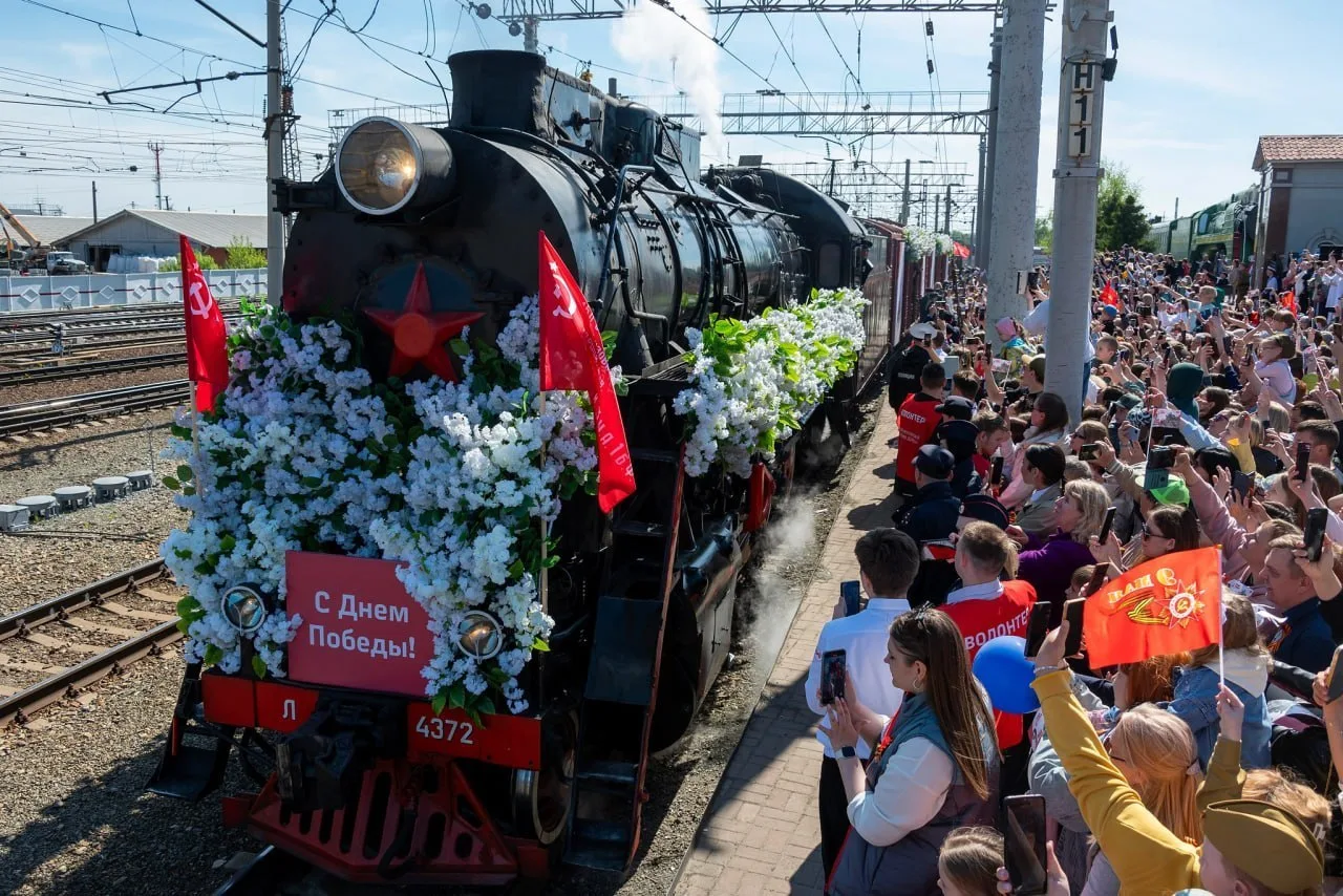 В составе будут «теплушки» с артистами в форме военных лет, а на перронах пройдёт выступление творческих коллективов. Прибытие ретропоезда — в 11:00.